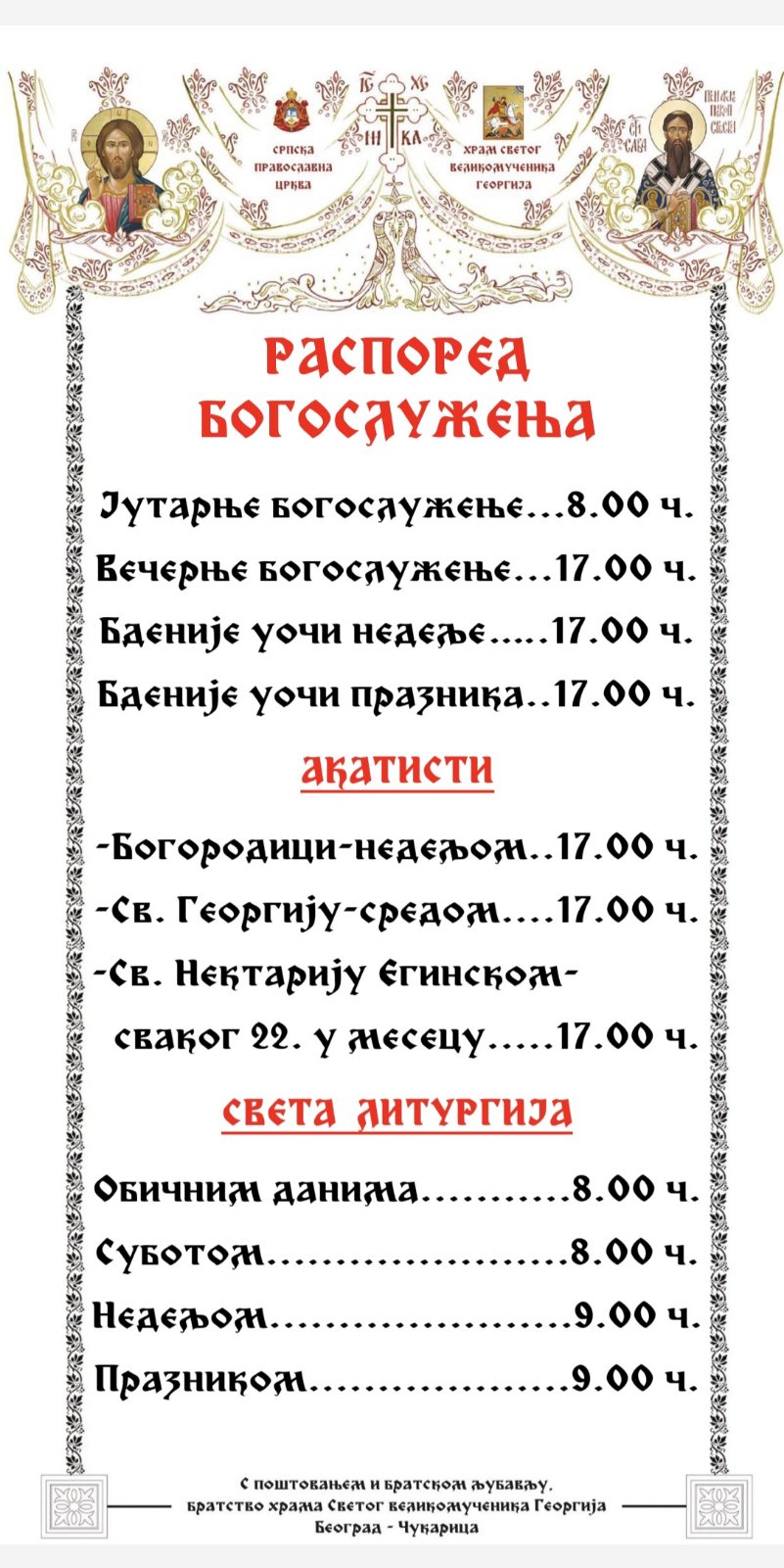РАСПОРЕД БОГОСЛУЖЕЊА